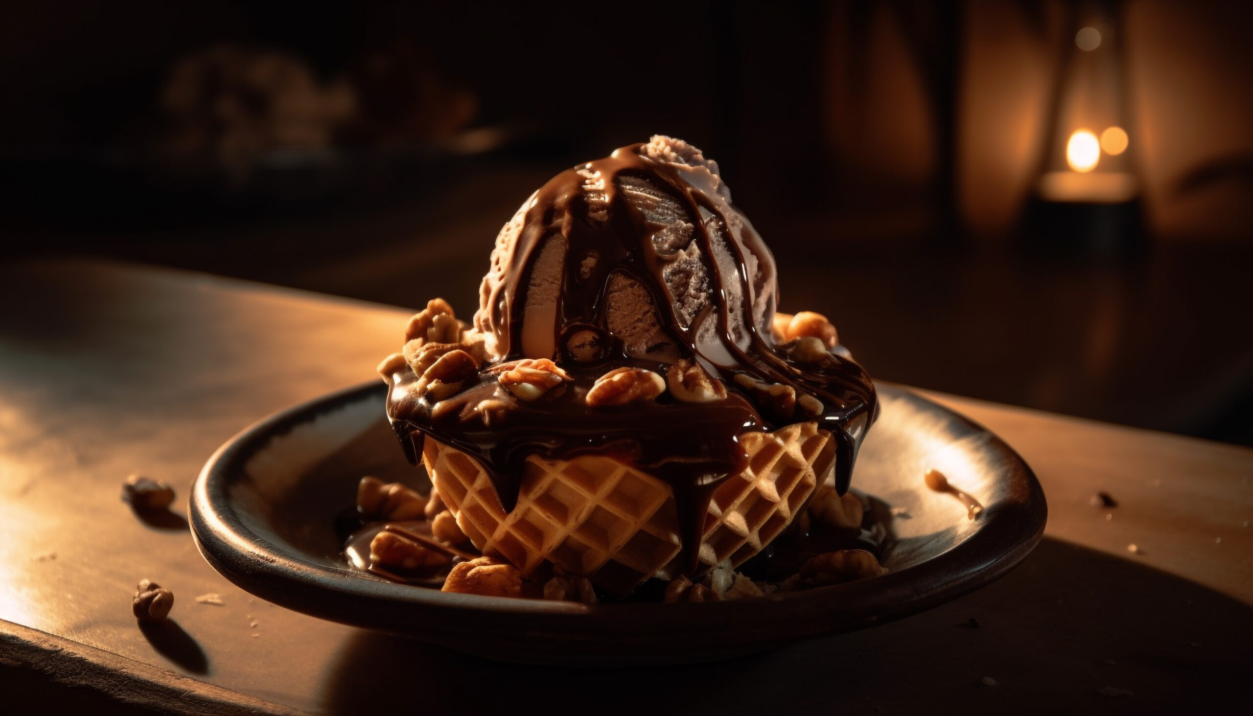Chocolate will harden on contact with the ice cream.